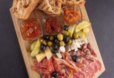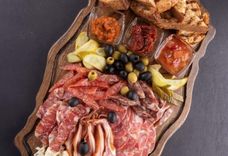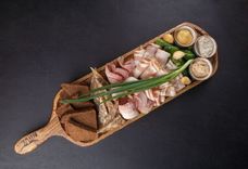 350 г • Ассорти с мясными деликатесами и фермерскими сырами, подается с оливками, маслинами, вялеными томатами, виноградным чатни, аджикой и ремесленным хлебом.
