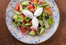 275 г • Сочный салат со свежими помидорами, огурцами, перцем, красным луком и маслинами. Заправляется соусом на основе оливкового масла, подается с цельным куском греческого сыра Фета.