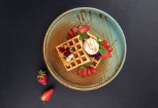 120/165 г • Хрустящие, ароматные и невероятно нежные вафли подаются с ванильным мороженым, сезонными фруктами или ягодами и топпингом.