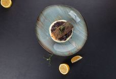 180/100 г • Мелко рубленная говяжья вырезка, с добавлением красного лука и маринованных огурцов, заправленная оливковым маслом, устричным и вустерским соусом. Подается с нежнейшим муссом из пармезана.