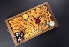 790/210 г • Не можете определиться? Все и сразу под пиво: луковые кольца, сырный хворост, куриные крылья в хрустящей панировке, куриные наггетсы, сырные палочки, картофель фри и чесночные гренки. Подается с соусами: сырный, тартар, кетчуп