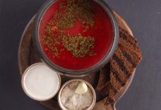 350/50 г • Ароматный сытный борщ, подается со смальцем на ржаном хлебе.