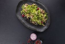 220 г • Необычное сочетание утки с грушей, голубым сыром и сочной зеленью под медово-горчичной заправкой делает этот салат фаворитом у наших гостей.
