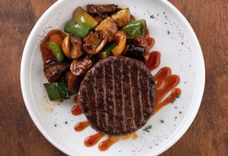 150/210/50 г • Насыщенный мясной вкус бифштекса из говядины прекрасно подчеркивает пореевый соус с дымком. Подается с жареным картофелем, стручковой фасолью и перцем.