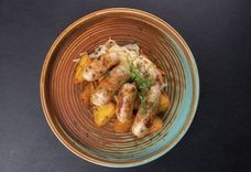 200/80 г • Нежные креветки в соусе из белого вина, чеснока и сливочного масла. Изысканный вкус с лёгкой кислинкой и пряной ноткой.